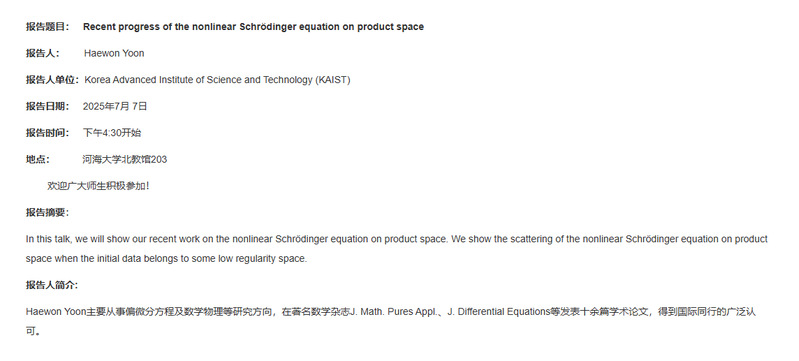 数学学院第16次学术报告:Recent progress of the nonlinear Schrödinger equation on product space