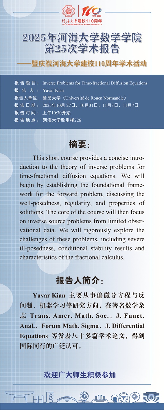 数学学院第25次学术报告:Inverse Problems for Time-fractional Diffusion Equations