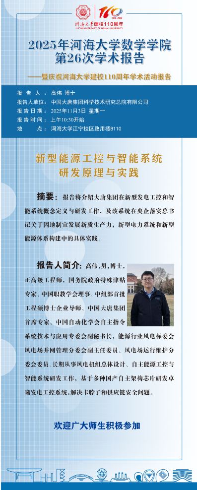 数学学院第26次学术报告:新型能源工控与智能系统研发原理与实践