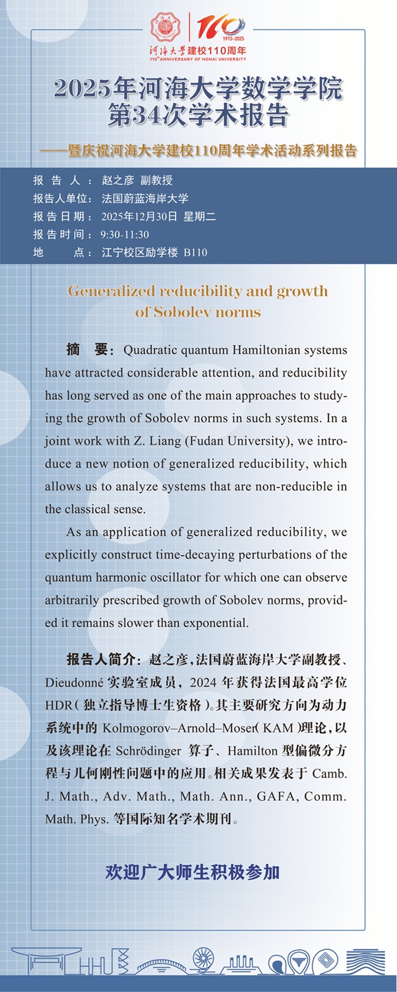 数学学院第34次学术报告:Generalized reducibility and growth of Sobolev norms