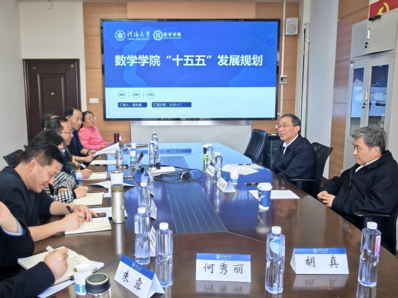 杨桂山书记听取汇报后对学院近年来取得的阶段性成果给予充分肯定。他指出,数学学院正处于关键的转型阶段,要充分抓住机遇,再上一个台阶。他强调,学院领导班子要认清“十五五”到底要干什么,各项指标是否能完成、短板是否能补齐。最后,他对学院提出了四点要求:一是优化学科布局,要结合数学博士学位点建设方案进行完善和修正,同时要加强学科间的交叉研究,坚定不移建设应用数学交叉研究中心,真正做到“入主流、强特色”。二是加强人才队伍建设,首先要提高学院进人的速度和力度,尤其是成熟青年人才、海外优秀人才的引进,要把进人工作放在学院党政最核心的位置;其次学院每年要派出2-3名青年教师出国访问,加强对年轻人的培养;再次要加强团队建设,尤其要发挥好客座教授培养青年教师的作用;最后学院要推进教师的分类管理,在人事管理上分好赛道,严格区分教学为主型和教学科研型,完善两类教师的考核评价体系。三是做好人才培养工作,设立本硕博贯通培养的拔尖创新班,并在保研、导师指导、出国交流等培养环节给予政策支持;要提高院内院外学生的升学率,提高数学公共课的教育质量。四是提高科学研究水平,学院要抓好基金申报工作,提高基金的资助率;要做好“水系统数学建模与智能计算”实验室建设工作,可依托召开学术年会、编制实验室年报等形式加强研究与交流。